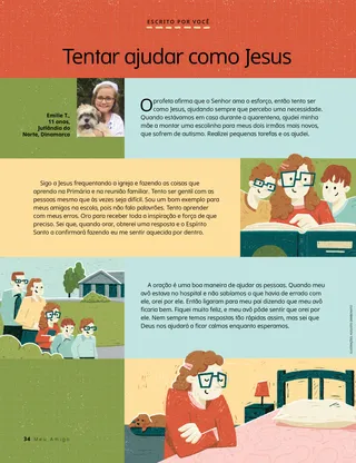 O profeta afirma que o Senhor ama o esforço, então tento ser como Jesus, ajudando sempre que percebo uma necessidade. Quando estávamos em casa durante a quarentena, ajudei minha mãe a montar uma escolinha para meus dois irmãos mais novos, que sofrem de autismo. Realizei pequenas tarefas e os ajudei.