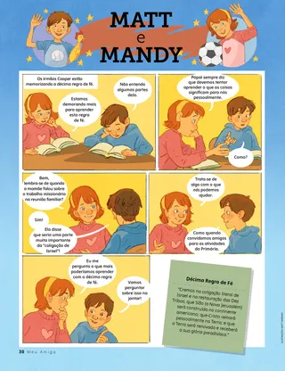 Setembro de 2021 Queridos amigosLeia uma mensagem sobre como encontrar paz em Cristo. Dallin H. OaksCantando para JesusLeia uma mensagem do presidente Oaks sobre como podemos mostrar nosso amor pelo Salvador por meio da música. Amie Jane LeavittNew amigas (Novas amigas)Brigit não fala espanhol, mas duas garotas fazem com que ela se sinta acolhida. Momento divertido — EscriturasUse estas atividades e ideias para estudar o Vem, e Segue-Me com sua família. Juliann DomanFalar coisas boasA família de Jonathan não está se entendendo muito bem. Mas ele tem uma nova ideia para a reunião familiar: falar coisas boas! O élder Stevenson visita on-line a AustráliaDurante a pandemia da Covid-19, o élder Stevenson ministra on-line aos missionários na Austrália. Encontre!Você consegue encontrar os itens escondidos no desenho? Conheça Eleanor, dos EUAConheça Eleanor, dos EUA, e saiba como ela ajuda, assim como Jesus. Jesus fazia convites às pessoasLeia uma história sobre como Jesus convidava outras pessoas e faça um plano para servir assim como Ele serviu. Aventuras nos EUA, com Margo e PaoloConheça um pouco sobre os EUA com Margo e Paolo e aceite o Desafio Mãos Que Ajudam. Eliza BroadbentA escolha vencedoraNathan decide santificar o Dia do Senhor e se recusa a participar de uma corrida no domingo. Cartões da história da IgrejaColecione os cartões para aprender sobre personagens importantes da história da Igreja! Este mês: Desideria Yáñez e Olivas Vila Aoy. Diversão com frutasUse a chave numérica para resolver estes quebra-cabeças repletos de frutas. Emily WernerA lição dos cogumelosAnnie apanha cogumelos com uma guia para saber quais são comestíveis. Isso lhe ensina sobre como ouvir o Espírito Santo. Baylor B.Um almoço especialBaylor recebe as novas crianças em sua classe convidando-as para almoçar com ele. Nik DayPaz em CristoPartitura simplificada para crianças Caderno da conferênciaFaça estas atividades enquanto assiste à conferência geral! Joni L. KochUm sentimento de pazQuando o élder Koch era menino, seu pai faleceu. Ele se sentiu em paz quando refletiu sobre o plano de salvação. Encontre as floresEncontre os padrões de flores no jardim. Mostrar e contarHistórias e desenhos de crianças de todo o mundo. Matt e MandyMatt e Mandy aprendem sobre a décima regra de fé. Para crianças maioresDicas e desafios para as crianças maiores. Lucy Stevenson EwellKim Ho JikHo Jik conhece o evangelho enquanto estuda nos EUA. Ele é batizado e se esforça para levar o evangelho à Coreia. Emilie T.Tentar ajudar como JesusEmilie T. compartilha as formas que ela escolheu de seguir a Jesus Cristo. A bondade por mim começaráComo podemos demonstrar bondade em casa, na escola e na igreja? Maryssa DennisMeu lado, seu ladoDuas irmãs que não se entendem muito bem dividem o quarto com uma cortina. Mas logo descobrem que não precisam dela. Origami de desafio de serviçoFaça esta dobradura para servir como Jesus. Para os amiguinhos Jennifer MaddyAmarelinha com as amigasQuando suas amigas discutem, Daya age como pacificadora. O Templo de KirtlandLeia uma história sobre o Templo de Kirtland e saiba mais sobre os templos. O templo é um lugar santoEnsine seus pequenos utilizando uma página para colorir cujo tema é o evangelho. A mensagem deste mês é: “O templo é um lugar santo”. Marissa WiddisonBondade na apresentação da PrimáriaQuando o amigo de Paulo chega atrasado à apresentação da Primária, ele o faz se sentir acolhido. Jordan Monson WrightJesus ama a todosEnsine seus pequenos a serem bondosos e a amarem como Jesus amou utilizando um poema de movimento. Momento divertido para os amiguinhos — EscriturasUse estas ideias para estudar o Vem, e Segue-Me com seus pequeninos. Prezados paisLeia uma mensagem aos pais sobre como criar amor e harmonia em seu lar.