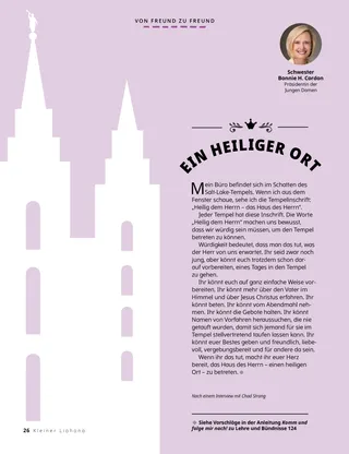 Wenn ihr das tut, macht ihr euer Herz bereit, das Haus des Herrn – einen heiligen Ort – zu betreten.