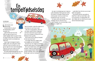 Der var smukke træer omkring templet. Træerne havde lysende orange og gule blade. Bladene på jorden knasede, mens Lydia og hendes familie gik rundt om templet.