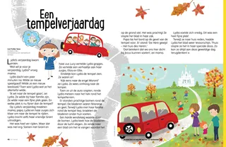 Er stonden prachtige bomen rond de tempel. De bladeren waren feloranje en geel. Terwijl Lydia met haar familie rond de tempel liep, kraakten de bladeren onder hun voeten.
