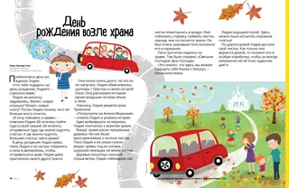Вокруг храма росли прекрасные деревья. На них были ярко-оранжевые и желтые листья. Пока Лидия и ее семья гуляли вокруг храма, под их ногами шуршали лежащие на земле листья.