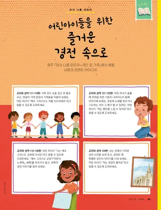교리와 성약 115~120편: 어린 자녀가 “나는 예수 그리스도 교회에 다녀요”라고 말할 수 있도록 도와주세요. “예수 그리스도 교회”(『어린이 노래책』, 48쪽)를 부르거나 듣고, 42쪽의 경전 이야기를 읽어 보세요.