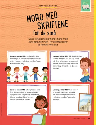 Disse forslagene går hånd i hånd med Kom, følg med meg – for enkeltpersoner og familier hver uke.