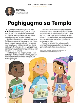 Kamo usab makakat-on sa paghigugma sa templo karon. Pipila kaninyo adunay mga litrato sa mga templo sa inyong mga panimalay. Daghan kaninyo ang makabisita sa mga nataran sa templo. Pipila ang makatambong gani sa mga open house kon matukod na ang mga templo.