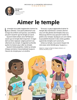 Toi aussi, tu peux apprendre à aimer le temple dès maintenant. Certains d’entre vous ont des photos de temples chez eux. Beaucoup d’entre vous peuvent visiter les jardins d’un temple. Quelques-uns ont même la possibilité d’assister à des visites guidées quand des temples sont construits.