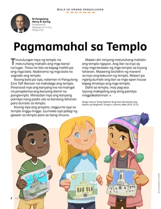 Noong bata pa siya, nalaman ni Pangulong Ezra Taft Benson na mahalaga ang templo. Pinanood niya ang kanyang ina na maingat na pinaplantsa ang kanyang damit na pangtemplo. Minasdan niya ang kanyang pamilya nang paalis sila sa kanilang tahanan para dumalo sa templo.