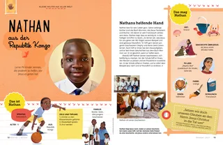 Abends hilft Nathan seinen Geschwistern, sich bettfertig zu machen. Vor der Schule hilft er ihnen, den Ranzen zu packen und ein Pausenbrot zuzubereiten. In der Schule stiftet er Frieden, und er eifert dem Beispiel Jesu nach und ist freundlich zu anderen.