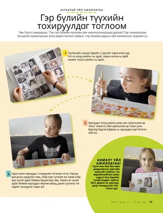 Гэр бүлийн гишүүн бүрийн 2 зургийг хэвлэ эсвэл зур. Нэг нь залуу үеийнх нь зураг, харин нөгөө нь арай ахимаг насны үеийнх нь зураг.