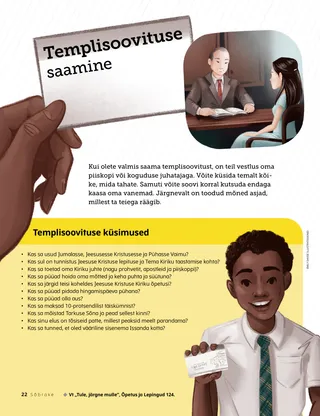 Kui olete valmis saama templisoovitust, on teil vestlus oma piiskopi või koguduse juhatajaga. Võite küsida temalt kõike, mida tahate. Samuti võite soovi korral kutsuda endaga kaasa oma vanemad. Järgnevalt on toodud mõned asjad, millest ta teiega räägib.