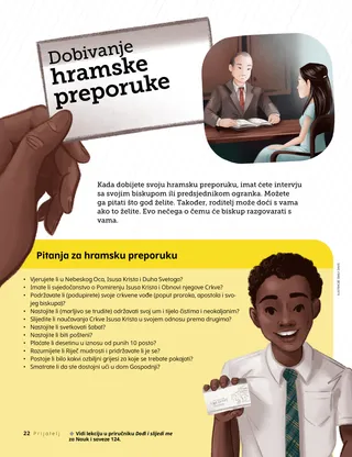 Kada dobijete svoju hramsku preporuku, imat ćete intervju sa svojim biskupom ili predsjednikom ogranka. Možete ga pitati što god želite. Također, roditelj može doći s vama ako to želite. Evo nečega o čemu će biskup razgovarati s vama.