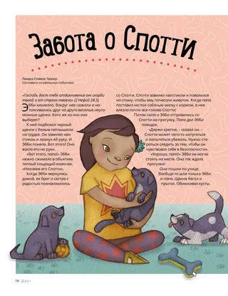 Эбби вспомнила, как она несла Спотти. Именно так нам помогает Иисус, – подумала она. Может, Иисус и не носил ее буквально на руках, но помогал ей ощутить прилив сил, когда ей это было необходимо. Как, например, однажды вечером, когда она испугалась темноты. Она помолилась и испытала чувство безопасности. Или когда она переживала о том, что может забыть взять в школу домашнюю работу. Она помолилась и почувствовала себя лучше – и ничего не забыла!