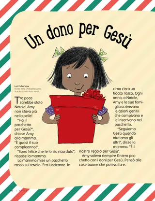 La mamma mise un pacchetto rosso sul tavolo. Era luccicante. In cima c’era un fiocco rosso. Ogni anno, a Natale, Amy e la sua famiglia scrivevano le azioni gentili che compivano e le inserivano nel pacchetto.