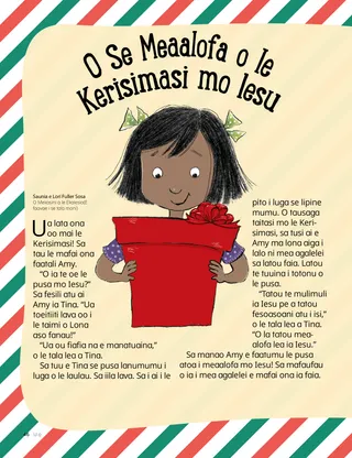Mulimuli ane o le Aso Kerisimasi. Sa amata ona tatala e Amy ni nai meaalofa. Sa ia tatalaina foi le meaalofa mo Iesu! Sa feauauai Tina ma Tama e faitau mea agalelei uma i totonu o le pusa.