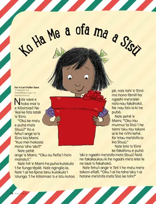 Faifai pea aʻu ki he ʻAho Kilisimasí. Naʻe fakaava ʻe ʻEimi ha ngaahi meʻaʻofa. Naʻá ne fakaava foki e meʻaʻofa maʻa Sīsuú! Naʻe taufetongi ʻa Mami mo Teti ʻi hono lau e ngaahi meʻa lelei kotoa pē ʻi he puhá.