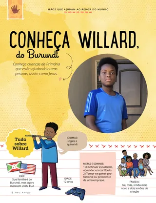 Os familiares de Willard eram refugiados. Eles tiveram que abandonar seu país de origem. Eles adoram servir às pessoas ao seu redor e também ajudam sua família no Burundi.