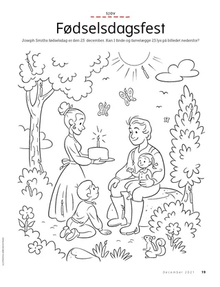 December 2021 Kære vennerLæs et budskab om julen. Dallin H. OaksDen første julegaveLæs et budskab fra præsident Dallin H. Oaks om den sande julegave. Richard M. RomneyJulekagenKaiya giver sin julekage væk, så hans ven kan få en godbid til jul. Sjov tid med skriftenBrug disse idéer til at studere Kom og følg mig med jeres familie. Jessica LarsenJul i MaliDer er ikke mange mennesker, der fejrer jul i Mali, men Judith er glad for, at hun kan fejre Jesu Kristi fødsel med sin gren. Ældste Soares taler med børnLær om ældste Ulisses Soares og begivenheden »Fra ven til ven« for børn. Find det!Kan I finde de skjulte genstande på billedet? Mød Willard fra BurundiMød Willard fra Burundi og hør om, hvordan han hjælper, ligesom Jesus gjorde. Jesus rakte ud til andreLæs en historie om, hvordan Jesus rakte ud til andre, og lav derefter en plan for at hjælpe, som han gjorde. På eventyr i Burundi med Margo og PaoloLær om Burundi med Margo og Paolo, og tag imod Hjælpende Hænder-udfordringen. Lindsay Stevens TannerPlet skal bæresDet går op for Abbie, at den måde, hun passer sin hvalp på, er ligesom den måde, Jesus passer på hende. Kort med Kirkens historieSaml på kort, og lær om vigtige personer i Kirkens historie! Denne måned: Tsune Ishida Nachie og Truman O. Angell. FødselsdagsfestUdfør denne aktivitet for at fejre Joseph Smiths fødselsdag! Maryssa DennisPiñata-overraskelsenAlan besøger sine bedsteforældre til jul og får en særlig overraskelse. En lys idéI kan klippe denne plakat med Jesu fødsel ud og hænge den på væggen. Jan Pinborough,Marias vuggesangLær at spille en ny julesang, »Marias vuggesang.« Marissa WiddisonDa Jesus blev fødtFortæl historien om Jesu Kristi fødsel med udklippede figurer. Thierry K. MutomboDerfor elsker jeg trosartiklerneLæs et budskab fra ældste Thierry K. Mutombo om, hvorfor trosartiklerne er vigtige. Quiz med trosartiklerneHvor godt kender I trosartiklerne? Tag denne quiz og find ud af det! Vis og fortælEn samling af citater og kunst fra børn fra hele verden. Matt og MandyMatt og Mandy studerer den tolvte trosartikel. For større børn For større børnTips og udfordringer for større børn. Sydney SquiresOlga BingOlga er ked af, at folk er holdt op med at komme i kirken, så hun opfordrer andre til at komme med hende. Chelsea Flake Mortensenjuledekorationer verden overLav dette julepynt fra hele verden. Laura ByrdEn varm og behagelig tjenesteAlex laver ekstra tørklæder til folk, der har brug for dem. Tilbageblik på mit årDet kan være godt at fejre de ting, du har lært, og de minder, du har fået i år! For små venner For små venner Jane McBrideSpecielle julekortHyrum laver et julekort til en, der bor langt væk. Kirken rundt om i verdenenLæs en historie om, hvordan Kirken er vokset rundt om i verden. Jesus elsker os alleUndervis jeres små med en evangelisk malebogsside. Denne måneds budskab er: »Jesus elsker os alle.« Lori Fuller SosaEn gave til JesusAmy og hendes familie giver en julegave til Jesus ved at gøre gode ting. Hej, venner!Mød nogle små venner fra hele verden. Sjov tid med skriften for de småBrug disse forslag til at studere Kom og følg mig med jeres små børn. Kære forældreLæs dette budskab til forældre om, hvordan man skaber kærlighed og harmoni i sit hjem.