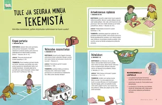 Toiminta: Sinäkin voit auttaa muita! Mene sivulle 12 ja tee paperista kori, kuten se, jossa Mooses oli. Kirjoita paperilapuille tapoja, joilla voit palvella muita. Laita sitten paperit koriin. Kun haluat auttaa jotakuta, valitse yksi paperi ja tee, mitä siinä sanotaan.