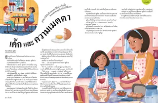 “ขอบใจจ้ะ! เค้กดูน่ากินมาก ลูกทำเองหรือ?” คุณแม่ถาม