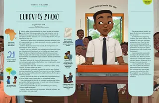 De volgende zondag droeg Ludovic niet alleen stoelen naar de kerk. Hij nam ook zijn speelgoedpiano mee. Toen het tijd was voor de openingslofzang, legde hij zijn trillende vingers op de toetsen. Hij begon te spelen. Iedereen zong mee. En het klonk fantastisch!