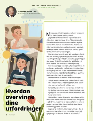 Jeg lover at vår himmelske Fader vil hjelpe deg å overvinne dine utfordringer. Han elsker deg og vil hjelpe deg å bli det han ønsker at du skal bli.