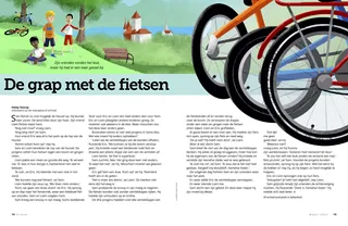 ‘Kom, we gaan iets leuks doen!’ zei Eric. Hij sprong op en liep naar het fietsenrek, waar een heleboel fietsen stonden. Sam en Liam volgden hem.