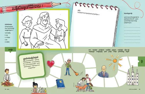 ខែ មីនា/ខែ មេសា ឆ្នាំ ២០២២ ជូនចំពោះប្រិយមិត្តសូមអានសារលិខិតអំពីការយកឈ្នះលើឧបសគ្គទាំងឡាយ ។ ក្លាយជាមិត្តភក្តិតាមរយៈសំបុត្រសូមអានសំបុត្រមកពីមិត្តភក្តិរបស់យើងដែលរស់នៅជុំវិញពិភពលោក ! ដាល្លិន អេក អូកការយកឈ្នះលើឧបសគ្គរបស់ចៅៗសូមអានសារលិខិតមកពីប្រធាន ដាល្លិន អេក អូក អំពីការយកឈ្នះលើឧបសគ្គរបស់ចៅៗ ។ ឆែលស៊ី ផ្លេក ម័រតេនសិនការជួយ និង ព្រះវិញ្ញាណបរិសុទ្ធកាលដែល ម៉ាតូ រៀបចំខ្លួនដើម្បីទទួលពិធីបុណ្យជ្រមុជទឹក គាត់បានជួយអ្នកដទៃ និងទទួលអារម្មណ៍នៃព្រះវិញ្ញាណបរិសុទ្ធ ។ សូមជួបជាមួយអាលីស មកពីប្រទេសហ្វីជីសូមជួបជាមួយអាលីស មកពីប្រទេសហ្វីជី ហើយរៀនពីរបៀបដែលនាងរៀនជួយដូចជាព្រះយេស៊ូវ ។ ព្រះយេស៊ូវបានមើលថែដល់អ្នកដែលឈឺសូមអានដំណើររឿងអំពីរបៀបដែលព្រះយេស៊ូវបានមើលថែដល់អ្នកដែលឈឺ ហើយបន្ទាប់មកសូមរៀបផែនការជួយ ដូចជាទ្រង់បានធ្វើ ។ ជម្រាបសួរមកពីហ្វីជី !រៀនអំពីប្រទេសហ្វីជីជាមួយ ម៉ាហ្គោ និង ប៉ោឡូ ! ហេលី យេនស៊ីលួចក្បាលវ៉ាល់កង់លេងស៊ែម និងមិត្តរបស់គាត់លួចបំណែកកង់របស់មនុស្សដទៃទៅលាក់លេង ។ ស៊ែម ប្រែចិត្ត ហើយជ្រើសរើសមិនធ្វើវាម្ដងទៀតឡើយ ។ សន្និសីទទូទៅដ៏រីករាយ !សូមធ្វើសកម្មភាពនេះនៅអំឡុងពេលសន្និសីទទូទៅ ។ ហ្សូ ស៊ីគោលដៅដើម្បីទទួលបុណ្យជ្រមុជទឹកសូមអានអំពីរបៀបដែល ហ្សូ ស៊ី បានដាក់គោលដៅសម្រាប់កម្មវិធីកុមារ និងយុវវ័យដើម្បីចូលរួមនៅក្នុងពិធីបុណ្យជ្រមុជទឹករបស់នាង ។ ចូរស្វែងរកវត្ថុដែលបានលាក់ !តើអ្នកអាចរកឃើញវត្ថុដែលបានលាក់ក្នុងរូបភាពនេះដែរឬទេ ? គំនិតឆ្លាតវៃប័ណ្ណប្រកាសនៃព្រះយេស៊ូវគ្រីស្ទដែលមិនអាចកាត់ថ្លៃបាន ការដើរតាមព្រះយេស៊ូវជាមួយគ្នាបណ្ដុំឯកសារសម្រង់របស់កុមារមកពីជុំវិញពិភពលោក ។ បេនយ៉ាមីន អិម ហ្ស៊ី ថៃជណ្ដើរយន្តនៃការប្រែចិត្តសូមអានសារលិខិតស្តីពីការប្រែចិត្តមកពីអែលឌើរថៃ ។ ល្បែងល្បងប្រាជ្ញារកអ្នកជិតខាងសូមប្រើតម្រុយទាំងនេះដើម្បីជួយម៉ី យកនំទៅឲ្យអ្នកជិតខាងរបស់នាង ។ លូស៊ី ស្ទីវ៉ែនសុន អ៊ីវែលព្យាណូរបស់ លូដូវិចលូដូវិច រៀនលេងព្យាណូសម្រាប់សាខាដ៏តូចរបស់គាត់នៅតូហ្គោ ។ ជូលីអាន ដូម៉ែនស្វែងរកសេចក្ដីសុខសាន្តម៉ូលី នឹករលឹកដល់បងៗរបស់នាង ប៉ុន្តែនាងទទួលបានសេចក្តីសុខសាន្តមកពីព្រះវិញ្ញាណ ។ យ៉ូសែប បានត្រៀមខ្លួនសម្រាប់គ្រាលំបាកសូមអានដំណើររឿងអំពីរបៀបដែលយ៉ូសែប បានរៀបចំខ្លួនសម្រាប់គ្រាលំបាកនៅឯស្រុកអេស៊ីព្ទ ។ ព្រះវរបិតាសួគ៌នឹងជួយខ្ញុំឆ្លងកាត់គ្រាលំបាកសូមបង្រៀនកូនតូចៗ របស់បងប្អូនដោយប្រើទំព័រផាត់ពណ៌ ដែលផ្តោតលើដំណឹងល្អ ។ សារលិខិតប្រចាំខែនេះគឺ « ព្រះវរបិតាសួគ៌នឹងជួយខ្ញុំឆ្លងកាត់គ្រាលំបាក » ។ ម៉ូសេ និងនំម៉ាន៉ាសូមអានដំណើររឿងអំពីរបៀបដែលព្រះបានប្