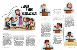 Schwester Fox gab den anderen Kindern einen Zettel. Darauf stand ein Satz, den sie aufsagen sollten. Aber Capri konnte doch nicht sprechen! Wie konnte sie da bei der Darbietung mitmachen?