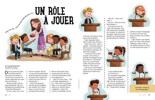 Sœur Fox distribue des morceaux de papier aux enfants. Sur chacun d’eux, on peut lire une phrase que les enfants devront dire. Mais Capri ne peut pas dire de mots. Comment participera-t-elle au programme ?