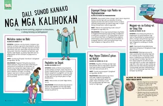 Kalihokan: Himoa nga espesyal kaayo ang Pasko sa Pagkabanhaw karong tuiga pinaagi sa pagbuhat sa kalihokan sa pahina 3. Sa matag adlaw sa semana sa dili pa ang Pasko sa Pagkabanhaw, pagbasa mahitungod ni Jesus og kolori ang usa ka bahin sa hulagway. Mahimo usab nimong guntingon ang mga hulagway sa mga pahina 24-25.