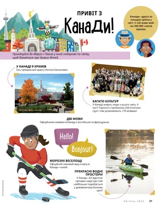 У Канаді живуть люди з усього світу. У місті Торонто є приблизно 250 етнічних груп і там розмовляють 170 мовами!