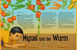 Eines Tages entdeckte er einen Wurm. Was sollte er jetzt tun? Er wollte ihm nicht wehtun. Aber würde der Wurm den Pflanzen schaden? Die meisten Lebensmittel erntete Miguels Familie im Garten.