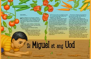 Hilig ni Miguel na tulungan si Mama sa halamanan nila. Tinakpan niya ng lupa ang maliliit na binhi. Diniligan niya ang mga ito. Ngunit hindi masyadong marami.