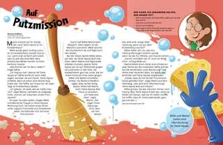 „Ich glaube, ich weiß, wie wir helfen können“, sagte Mama, nachdem sie aufgelegt hatte. „Komm, wir brauchen unsere Putzsachen!“