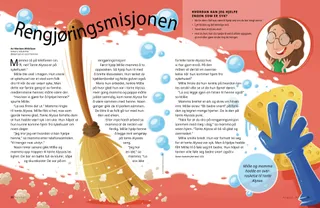 Først hjalp Millie mamma å ta oppvasken. Så hjalp hun til med å brette klesvasken. Hun tørket av kjøkkenbordet og feide gulvet også.