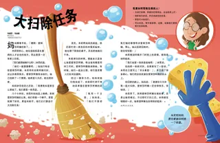 几个小时后,米莉和妈妈走上楼梯,来到爱丽莎阿姨的公寓。他们带着一个桶子,里面装满了抹布、肥皂和刷子。他们正打算进行大扫除任务!
