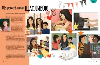 Я також можу бути щасливою, коли допомагаю вдома. Мій тато служить в армії, тому я допомагаю мамі доглядати за моїми братиком і сестричкою. Я читаю їм історії. Я граю з ними. Я вислуховую їх, коли їм потрібно поговорити. А ще я люблю куховарити.