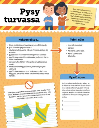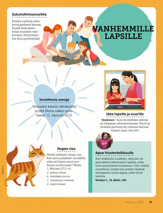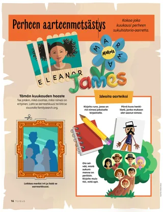 Elokuu 2022 Rakkaat ystävätLue viesti itsesi suojelemisesta ja avun saamisesta. Ystävät muuallaLue postia ystäviltämme eri puolilta maailmaa! Russell M. NelsonAnna Jumalan vallita!Lue presidentti Russell M. Nelsonin sanoma siitä, että annamme Jumalan vallita. Noelle BarrusValmiina ajamaanQuade näkee paljon vaivaa oppiakseen ajamaan pyörällä, jotta hän voi lähteä ajelulle ystäviensä kanssa. Tule ja seuraa minua – tekemistäKäytä näitä tehtäviä, kun tutkitte perheenne kanssa Tule ja seuraa minua -aineistoa. Psalmit opettavat Jeesuksesta KristuksestaLue Vanhan testamentin psalmeista. Pyhien kirjoitusten sankarikortitKerää kortteja, joissa kerrotaan Vanhan testamentin tärkeistä ihmisistä! Tässä kuussa: Ruut ja Boas. Kirjoita psalmiKirjoita oma psalmi! Loistava ajatusJuliste, jossa on viesti ”Oman rauhani minä annan teille.” Julia WillardsonParannus on hyvä asia!Suututtuaan ystävälleen Gemma päättää tehdä parannuksen ja pyytää anteeksi. Perheen aarteenmetsästysOpi suvustasi ja lisää jotakin uutta sukuhistoriasi aarrearkkuun. Etsi!Löydätkö tähän kuvaan piilotetut esineet? Tutustu Jaromiin MeksikostaTutustu Jaromiin Meksikosta ja lue, kuinka hän auttaa Jeesuksen tavoin. Jeesus lupasi meille lohtuaLue kertomus siitä, kuinka Jeesus lupasi meille lohtua, ja tee sitten suunnitelma auttaa Jeesuksen tavoin. Terveisiä Meksikosta!Tutustu Meksikoon Margon ja Paolon seurassa! Marissa WiddisonSiivoustehtäväKun Millien täti on sairaalassa, Millie ja äiti siivoavat yllätyksenä hänen asuntonsa. VärityskuvaVäritysaukeama lapsille Ronald A. RasbandKuinka voin kokea rauhaa pelottavina aikoina?Lue vanhin Ronald A. Rasbandin sanoma rauhan kokemisesta. Etsi erotEtsi kuvista 10 eroavuutta. Yhdessä Jeesuksen jalanjäljissäKokoelma lasten ajatuksia ympäri maailman. Pysy turvassaIdeoita, jotka auttavat lapsia suojelemaan itseään ja pysymään turvassa väkivallalta Hassuja eläimiäEtsi Nooan arkista ne hassut asiat, jotka eivät kuulu sinne. Mikko ja MinttuMikko ja Minttu puhuvat siitä, kuinka lapsilla voi olla myönteinen vaikutus maailmaan. Vanhemmille lapsilleVinkkejä ja tehtäviä vanhemmille lapsille Michele HillMargaret pelastaa tilanteenKun laiva alkaa upota, Margaret rukoilee ja keksii keinon pelastaa tilanteen. Julia Salomatina15 minuutin ihmeSaša ja äiti eivät ole varmoja, ehtivätkö he bussiin ajoissa, mutta he pitävät rukouksen ja tekevät parhaansa. Angeline B.Mikä tekee minut onnelliseksiAngeline B. Kanadasta kertoo asioista, jotka tekevät hänet onnelliseksi. Vanhan testamentin sudokuRatkaise sudoku-tehtävä Vanhan testamentin numeroiden perusteella. Pikku ystävillePiirrä katkoviivoja pitkin niin, että kuviot tulevat valmiiksi. Hei ystävät!Tutustu muutamiin pikku ystäviimme eri puolilta maailmaa. PuuhahetkiLöydätkö tähän kuvaan piilotetut esineet? Jennifer MaddyEi tökkimistä!Kati oppii, että on ihan sopivaa pyytää ystävää lopettamaan tökkiminen. Jane McBrideMiguel ja matoMiguel saa tietoa yhdestä taivaallisen Isän luomistyöstä. Herra on minun paimeneniOpeta pieniä lapsiasi evankeliumiin liittyvän värityskuvan avulla. Tämän kuukauden sanoma on: ”Herra on minun paimeneni.” Jeesus on sanonutJuliste, jossa on sanoma: ”Jeesus on sanonut, että minun tulee antaa muille anteeksi.” Rakkaat vanhemmatLue vanhemmille suunnattu viesti lasten suojelemisesta ja lapsista huolehtimisesta. Julkaistaan vain sähköisenä Lori Fuller SosaKutitusongelmaVeli ja sisko oppivat kunnioittamaan toistensa kehoa ja rajoja paremmin.