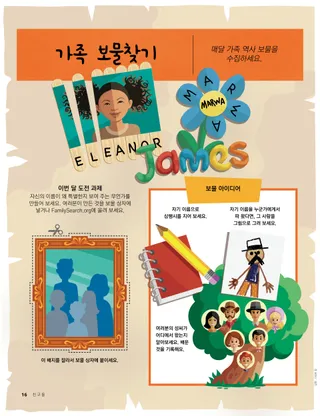2022년 8월호 사랑하는 친구들에게자신을 보호하고 도움을 받는 방법에 관한 메시지를 읽어요. 편지로 만나는 친구들세계 곳곳에 사는 우리 친구들의 편지를 읽어 보세요! 러셀 엠 넬슨 회장하나님께서 승리하게 하십시오!하나님께서 승리하시도록 하는 것에 관한 러셀 엠 넬슨 회장님의 메시지를 읽어 보세요. 노엘 바루스퀘이드와 자전거퀘이드는 친구들과 함께 자전거를 타기 위해 자전거 타는 법을 열심히 익혔어요. 와서 나를 따르라 활동가족과 함께 『와서 나를 따르라』를 공부할 때 아래 활동을 활용해 보세요. 시편은 예수 그리스도에 대해 가르쳐요구약전서에 있는 시편에 대해 읽어 보세요. 경전 인물 카드카드들을 모으면서 구약전서에 나오는 중요한 인물들에 대해 배워 보세요. 이번 달: 룻, 보아스 시를 지어요직접 시를 지어요! 빛나는 아이디어“잠잠하라 고요하라”라는 메시지 포스터. 줄리아 윌라드슨회개는 좋은 거니까!친구에게 화를 낸 후, 제마는 회개하고 사과하기로 마음먹었어요. 가족 보물찾기여러분의 가족에 대해 알아보고, 가족 역사 보물 상자에 새로운 것을 넣어 보세요. 숨은그림찾기그림 속에 숨어 있는 물건들을 찾아낼 수 있나요? 멕시코의 하롬을 만나 보세요멕시코에 사는 하롬이 어떻게 예수님처럼 사람들을 돕는지 알아보세요. 예수님은 우리에게 위안을 약속하셨어요예수님께서 어떻게 우리에게 위안을 약속하셨는지 읽고, 그분처럼 다른 사람을 돕기 위한 계획을 세워 보세요. 안녕하세요? 여기는 멕시코예요!마고, 파올로와 함께 멕시코에 대해 배워 보세요! 머리사 위디슨청소 대작전이모가 병원에 입원하는 동안, 밀리와 엄마는 깜짝 선물로 이모의 집을 청소하기로 했어요. 색칠하기어린이를 위한 색칠하기 로널드 에이 래스번드 장로무서울 때 어떻게 평안을 찾을 수 있을까요?로널드 에이 래스밴드 장로님의 평안을 찾는 것에 관한 메시지를 읽어 보세요. 다른 그림 찾기두 그림에서 서로 다른 부분을 10곳을 찾아보세요. 함께 예수님을 따릅니다전 세계 아이들의 이야기 모음. 안전하게 생활하기아이들이 자신을 보호하고 학대로부터 안전하게 지내는 데 도움이 되는 아이디어 우스꽝스러운 동물들노아의 방주에 있으면 웃길 것 같은 물건을 찾아보세요. 매트와 맨디매트와 맨디가 어떻게 하면 어린이들이 세상에 긍정적인 변화를 가져올 수 있는지를 이야기해요. 고학년 어린이를 위하여고학년 어린이를 위한 조언과 활동 미셸 힐마거릿이 구했어요배가 침몰하기 시작하자 마거릿은 기도하며 해결 방법을 생각해요. 율리아 살로마티나15분간의 기적사샤와 엄마는 버스를 제시간에 탈 수 있을지 확신할 수 없지만 기도하고 최선을 다해요. 앤젤린 비, 11세, 캐나다 퀘벡나를 행복하게 하는 것캐나다에 사는 앤젤린 비가 자신을 행복하게 만드는 것들에 대해 이야기해요. 구약전서 스도쿠구약전서에 나오는 숫자를 바탕으로 한 스도쿠 퍼즐을 풀어 보세요. 어린 친구들을 위하여선을 따라서 모양을 완성해 보세요. 친구야, 안녕?전 세계의 어린 친구들을 만나보세요. 활동 시간그림 속에 숨어 있는 물건들을 찾아낼 수 있나요? 제니퍼 매디이제 그만해!케이트는 친구에게 그만 찌르라고 말해도 괜찮다는 것을 배워요. 제인 맥브라이드미겔과 곤충미겔은 하나님 아버지의 창조물 중 하나에 대해 알게 되었어요. 주님은 나의 목자세요복음을 주제로 한 색칠공부를 통해 어린 자녀를 가르쳐 보세요. 이번 달 메시지는 “주님은 나의 목자세요”입니다. 예수님이 말씀하셨어요“예수님은 제가 다른 사람들을 용서해야 한다고 말씀하셨어요.”라는 메시지가 담긴 포스터 사랑하는 부모 여러분자녀를 보호하고 돌보는 것에 대해 이야기하는, 부모 여러분을 위한 메시지를 읽어 보세요. 온라인 전용 로리 풀러 소사간지럽히지 마!남매가 서로의 몸과 경계선을 존중하는 것을 배워요.