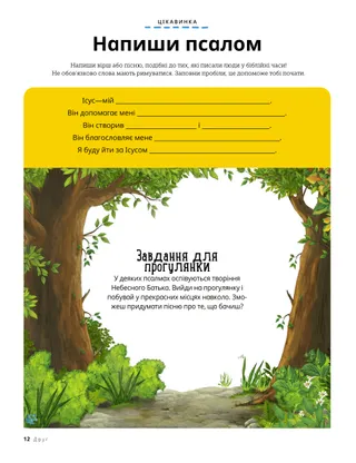 Серпень 2022 Дорогі друзі!Прочитайте послання про те, як захистити себе і звернутися по допомогу. Друзі по листуваннюПрочитай кілька листів від наших друзів з усього світу! Рассел М. НельсонХай Бог буде понад усе!Прочитай послання від Президента Рассела М. Нельсона про те, що нам слід ставити Бога понад усе. Ноель БаррусГотовий до їздиКвейд наполегливо працює, навчаючись їздити на велосипеді, щоб він міг кататися зі своїми друзями. За Мною йдіть: заходиВикористовуйте ці заходи під час навчання за посібником За Мною йдіть разом із сім’єю. Псалми навчають про Ісуса ХристаПрочитай про псалми у Старому Завіті Картки “Герої з Писань”Збери картки, щоб дізнатися про видатних людей зі Старого Завіту! Цього місяця: Рут і Боаз. Напиши псаломНапиши свій псалом! Чудова ідеяПлакат з посланням: “Мовчи, перестань!” Джулія ВіллардсонПокаяння—чудове!Джемма, після того як розсердилася на свою подружку, вирішила покаятися і попросити вибачення. Пошук сімейних скарбівДізнайся більше про свою сім’ю і додай щось нове до коробки зі скарбами з сімейної історії. Знайди це на малюнку!Чи можеш ти знайти на малюнку сховані предмети? Знайомся: Яром з МексикиПознайомся з Яромом з Мексики і дізнайся, як він допомагає іншим, як це робив Ісус. Ісус обіцяв нам втішенняПрочитай історію про те, що Ісус пообіцяв нам втішення, а потім склади план, щоб допомагати так, як це робив Він. Привіт з Мексики!Дізнайся про Мексику з Марго і Паоло! Марісса ВіддісонМісія прибиранняКоли Мілліна тітонька знаходиться у лікарні, Міллі з мамою прибирають її квартиру, щоб зробити їй сюрприз. РозмальовкаРозмальовка для дітей Рональд А. РазбандЯк я можу знайти мир у страшні часи?Прочитай послання старійшини Рональда А. Разбанда про те, як знайти мир. Знайди відмінностіЗнайди 10 відмінностей між малюнками. Наслідувати Ісуса разомПідбірка дитячих висловів з усього світу. Залишайся у безпеціІдеї, які допоможуть дітям захищати себе та захиститися від насильства Кумедні твариниЗнайди кумедні предмети, які не стосуються Ноєвого ковчегу. Метт і МендіМетт і Менді розповідають, як діти можуть позитивно впливати на світ. Для дітей старшого вікуПідказки і завдання для дітей старшого віку Мішель ХіллМаргарет рятує становищеКоли корабель почав тонути, Маргарет молилася і думала, як врятувати становище. Юлія Саломатіна15-хвилинне чудоСашко з мамою не були впевнені, що встигнуть на автобус, але вони помолилися й зробили все, що було в їхніх силах. Анджеліна Б.Що робить мене щасливоюАнджеліна Б. з Канади розповідає, що робить її щасливою. Старий Завіт, головоломкаРозв’яжи головоломку на основі чисел у Старому Завіті. Маленьким друзямПроведи лінії, щоб завершити малюнок. Привіт, друзі!Познайомся з маленькими друзями з усього світу. Час для завданьЧи можеш ти знайти на малюнку сховані предмети? Дженніфер МеддіНе підштовхуй!Кейт дізналась, що попросити свою подружку, щоб та припинила підштовхувати її,—це правильно. Джейн Мак-БрайдМігель і червʼякМігель дізнається про одне зі створінь Небесного Батька. Господь—мій ПастирНавчайте ваших маленьких дітей за допомогою євангельської сторінки-розмальовки. Послання цього місяця звучить так: “Господь—мій Пастир”. Ісус сказавПлакат з посланням: “Ісус сказав, що мені потрібно прощати інших”. Шановні батьки!Прочитайте послання для батьків про те, я
