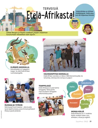 Etelä-Afrikka on Afrikan eteläkärjessä. Siellä asuu noin 60 miljoonaa ihmistä.