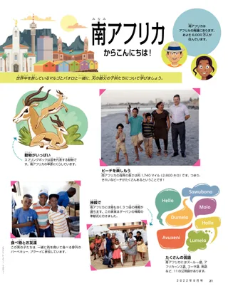 南アフリカにはズールー語,アフリカーンス語,コーサ語,英語など,11の公用語があります。