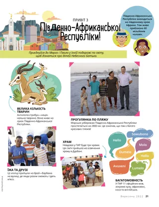 Південно-Африканська Республіка знаходиться на південному краю Африки. Там живе приблизно 60 мільйонів чоловік.