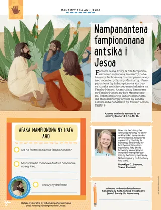 Fantatr’i Jesoa Kristy fa hila fampiononana ireo mpianany taorian’ny nahafatesany. Noho izany dia nampianatra azy ireo momba ny Fanahy Masina Izy. Nampanantena Izy fa hampionona azy ireo sy hiaraka amin’izy ireo mandrakariva ny Fanahy Masina. Anarana iray fiantsoana ny Fanahy Masina ny hoe Mpampionona. Rehefa malahelo isika na matahotra, dia afaka manampy antsika ny Fanahy Masina mba hahatsiaro ny fitiavan’i Jesoa Kristy.