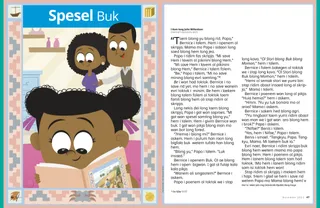 Bernice i openem Buk. Ol ae blong hem i open bigwan. I gat ol fulap kala kala pikja.