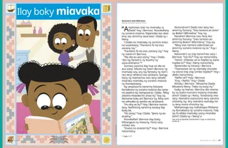 Isaky ny hariva i Bernice dia mamaky ny bokin-tsoratra masiny miaraka amin’i Dada sy i Neny. Tondroiny ireo sary. Nianatra nanonona teny sarotra vitsivitsy izy. Ary nianatra namaky irery teny mora vitsivitsy izy.