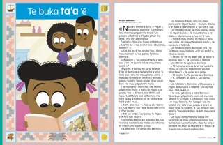 ’Ua ’ata’ata ’o Bernice. « Māuruuru e Pāpā. Māuruuru e Māmā. ’Ua au roa vau i teie buka. »