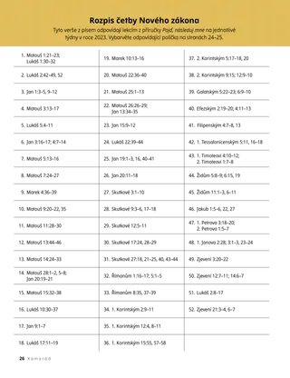 Tyto verše z písem odpovídají lekcím z příručky Pojď, následuj mne na jednotlivé týdny v roce 2023. Vybarvěte odpovídající políčka na stranách 24–25.