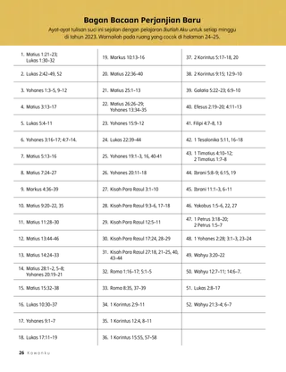 Ayat-ayat tulisan suci ini sejalan dengan pelajaran Ikutlah Aku untuk setiap minggu di tahun 2023. Warnailah pada ruang yang cocok di halaman 24–25.