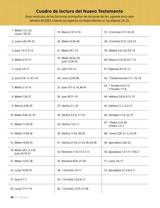 Estos versículos de las Escrituras acompañan las lecciones de Ven, sígueme para cada semana de 2023. Colorea los espacios correspondientes en las páginas 24–25.